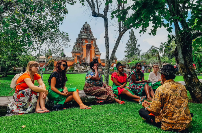 Wir geben unseren Teilnehmer*innen die Möglichkeit, das balinesische Schulsystem kennenzulernen – von den Lehrmethoden bis hin zum Schulalltag der Kinder. Durch die Interaktion mit den Schüler*innen lernen beide Seiten neue Perspektiven kennen. Da der Tourismus 90% der balinesischen Wirtschaft ausmacht, werden die Kinder so schon früh an den internationalen Austausch gewöhnt. Jede Tour beinhaltet zudem eine Spende an die Schule, um Bildung und Infrastruktur nachhaltig zu fördern. Besonders schön: Die Kinder teilen ihre Kultur mit uns durch traditionelle Tänze, Kunsthandwerk und Musik.