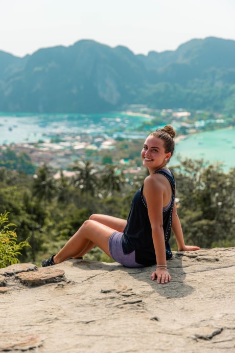 Heute wird’s richtig inselig. Mit der Fähre geht’s über die Andamanensee nach Koh Phi Phi, also türkisblaues Wasser, Boote am Horizont und dieses Gefühl von „Okay, jetzt bin ich wirklich in Thailand“. Nach dem Check-in hast du Zeit zum Ankommen: auspacken, ein bisschen durch die Gassen schlendern, irgendwo einen Smoothie holen oder einfach am Strand sitzen und das Inseltempo aufsaugen. Zum Sonnenuntergang wartet dann ein absolutes Must: der Hike zum Phi Phi Viewpoint. Oben angekommen? Aussicht wie im Film. Kamera bereithalten, aber vergiss nicht, einfach auch kurz nur zu gucken.