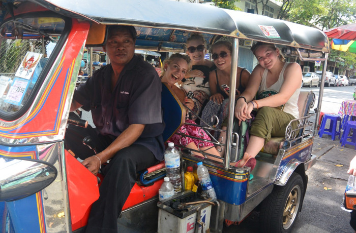 Du wirst am Flughafen abgeholt und zu deiner Unterkunft gebracht. Du wohnst ganz in der Nähe der berüchtigten Khao San Road, im Herzen Bangkoks. Später triffst du auf deine Travel Crew und euren Tourguide. Gemeinsam macht ihr nach einem typisch thailändischen Dinner das Nachtleben Bangkoks unsicher. Freu dich auf eine unvergessliche Nacht mit deinen neuen Travel Buddies.