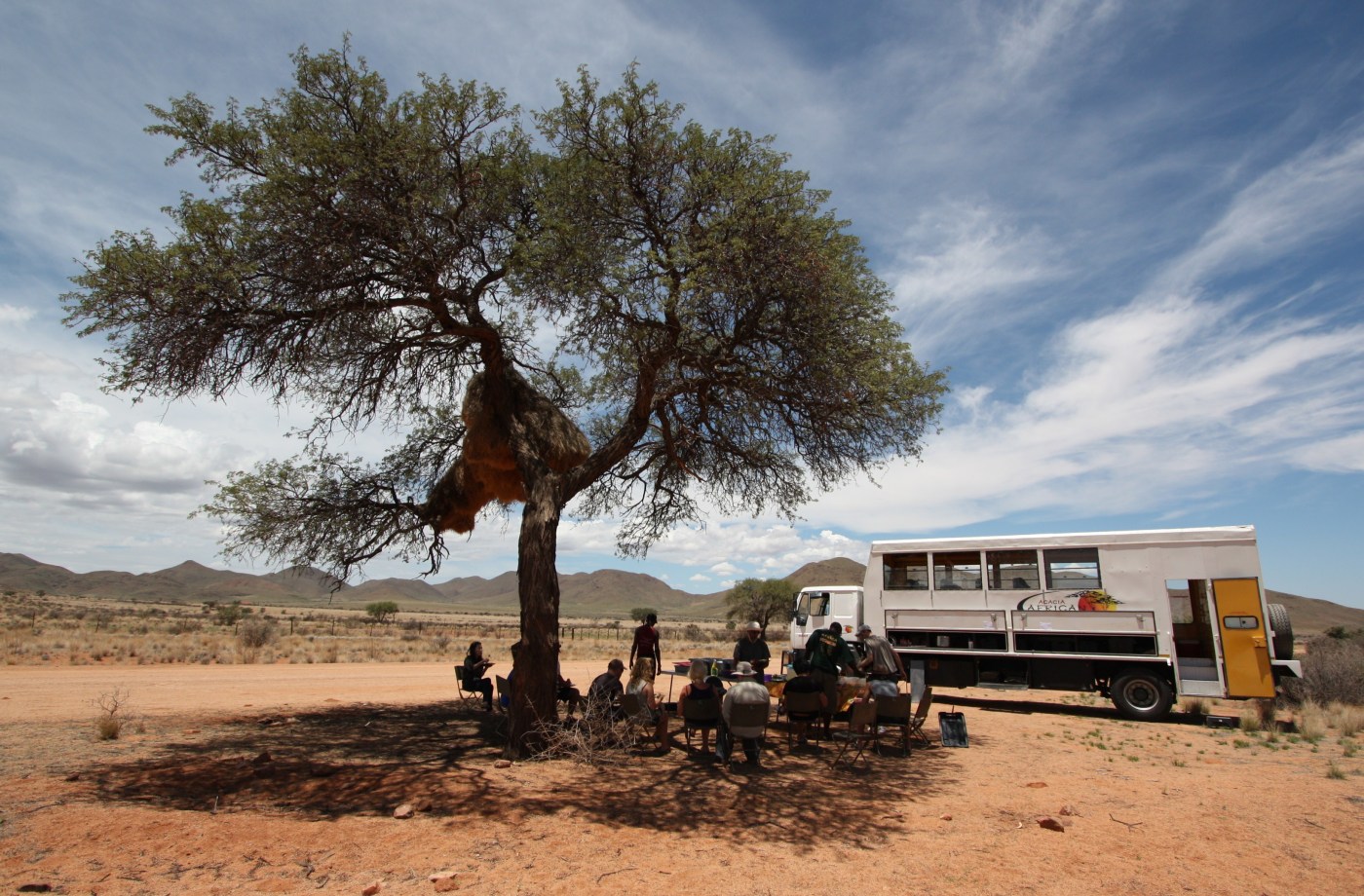 Nach einer Übernachtung in der Nähe des Canyons geht es weiter nach Norden in die Sesriem-Region, dem Tor zum Namib-Naukluft-Nationalpark mit der ältesten Wüste der Welt und den höchsten Sanddünen. Der Namib-Naukluft-Nationalpark umfasst einen Teil der Namibwüste und die Naukluftberge. Mit einer Gesamtfläche von 49.768 km2 ist er größer als die Schweiz, der zweitgrößte Wildpark Afrikas und der viertgrößte der Welt. Hier schlägt die Gruppe ihr Nachtlager unter dem namibischen Sternenhimmel auf. Enjoy the stars!