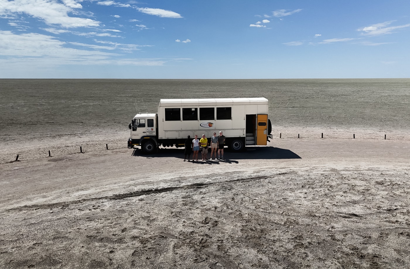 Heute unternimmt die Gruppe eine ganztägige Pirschfahrt in einem Overland Truck durch diese wunderbare Tierwelt. Du erkundest die beeindruckende Salzpfanne, die sogar aus dem Weltall zu sehen ist. Halte von den Hauptstraßen aus Ausschau nach Elefanten, Nashörnern, Zebras, Giraffen und den zahlreichen Weidetieren, die man oft an den Wasserlöchern sieht. Trotz der Trockenheit ist der Park Heimat einer Vielzahl von Vogelarten, darunter die große Kori-Trappe, der Sekretärvogel und viele andere Körner- und Insektenfresser sowie Raubvögel. Nach der ganztägigen Pirschfahrt kehrt die Gruppe zum Camp zurück.