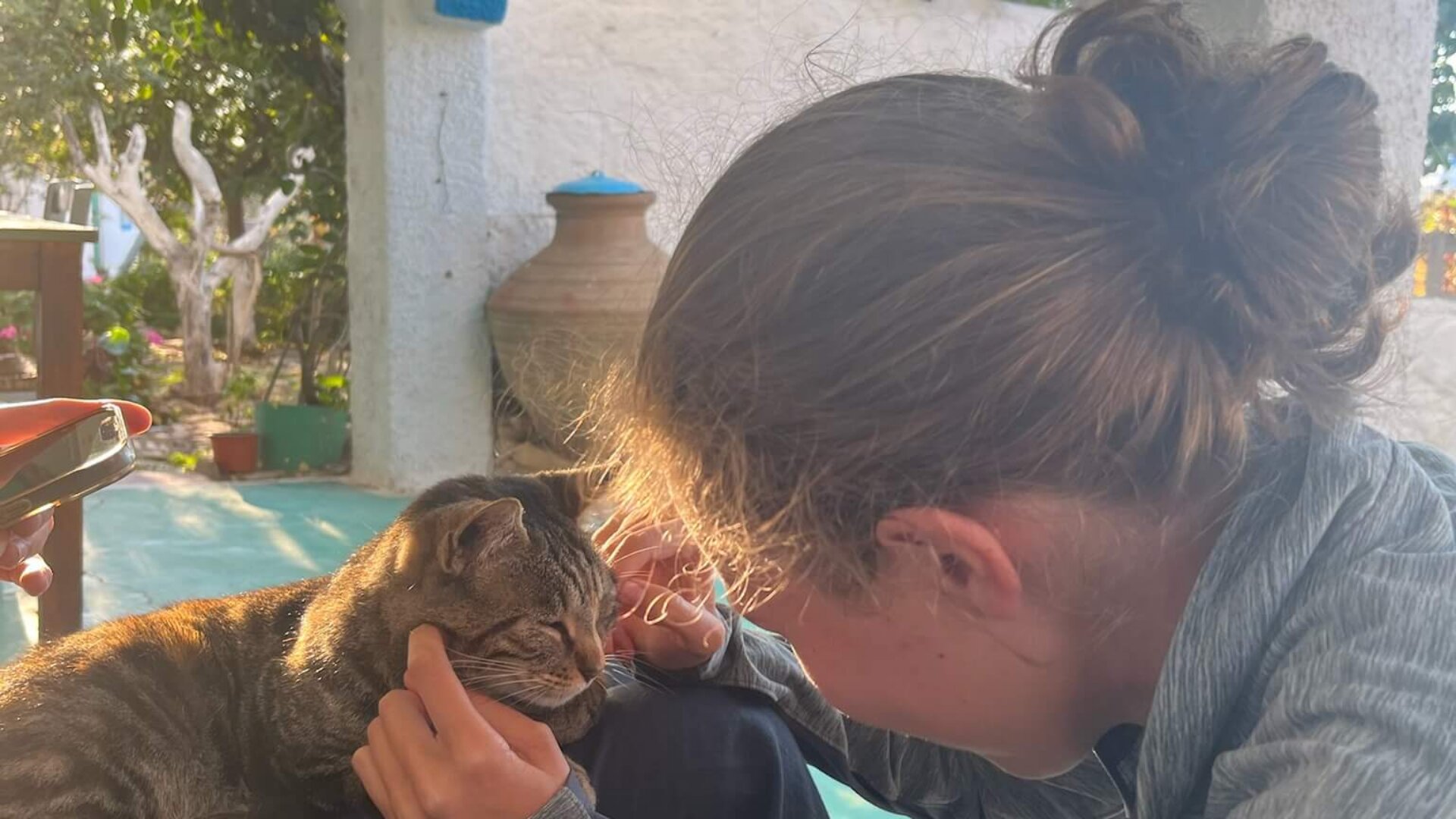 Wir haben meistens um 8 angefangen und dann so 2 bis 4 Stunden gearbeitet. Es gibt tägliche Aufgaben wie Tiere füttern und danach hat uns Kostas gesagt, was wir machen. Das hat jeden Tag variiert. Um 14 Uhr gab es immer Mittag und danach war Freizeit und jeder konnte machen, was er/ sie wollte. Wir haben oft Spiele gespielt und uns gesonnt. Abends haben wir dann zusammen gekocht und manchmal etwas gebacken.