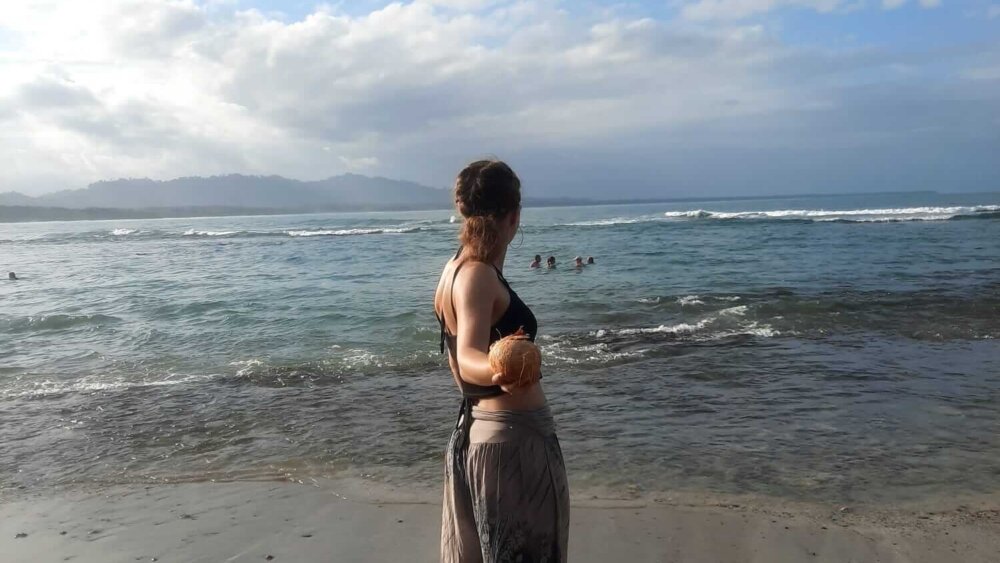 7:30 Uhr Frühstück, Sprachkurs, Mittagessen kochen, zum Strand oder nach Puerto Viejo oder in den Wald fahren, eventuell eine Yoga Stunde besuchen, Abendessen, Roter König mit Freunden spielen oder Film anschauen oder Lagerfeuer am Strand, schlafen gehen