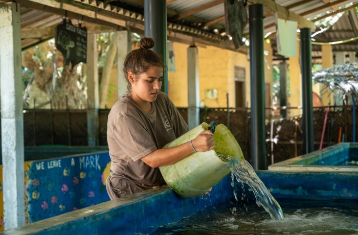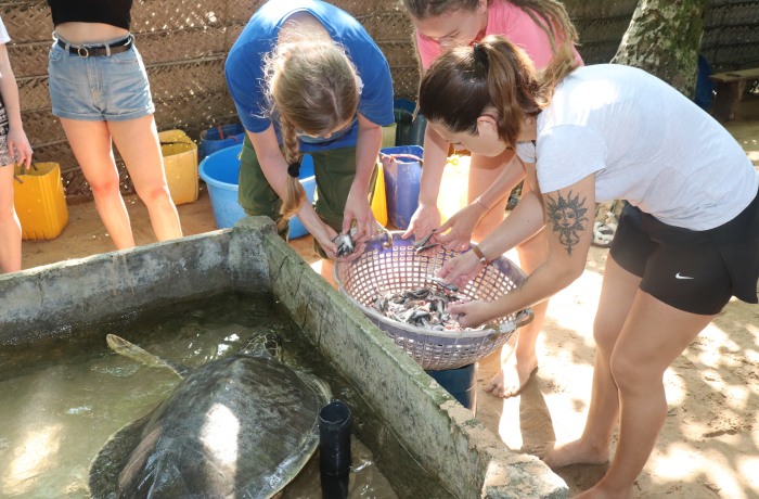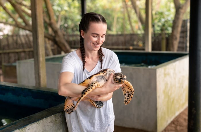 Dein Einsatz findet in einer Meeresschildkröten-Auffangstation Sri Lankas statt. Hier hilfst du dem Team und unterstützt dabei in vielen dringenden, anfallenden Aufgaben, wie z.B. die Station und die Wasserbehälter sauber zu halten und diese mit Salzwasser zu befüllen. Zudem bereitest du die Nahrung für die Schildkröten vor. In der Station befinden sich auch viele verletzte und kranke Schildkröten, denen du unter Anleitung der erfahrenen Mitarbeiter *innen Medizin verabreichst. Die Tiere bleiben so lange in der Station bis sie sich komplett erholt haben. Zu den Bewohnern gehören auch Schildkröten, die nicht mehr alleine im Ozean überleben würden. Diese bleiben dann ihr restliches Leben dort. Die Schildkröten müssen gefüttert und gelegentlich auch gewaschen werden, was zu deinen Aufgaben gehört.
