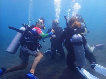Du möchtest am Projekt teilnehmen, hast aber noch keinen Tauchschein? Kein Problem – du kannst deinen PADI Open Water Schein direkt vor Ort im Projekt bei einem dreitägigen Kurs absolvieren (Aufpreis ca. $380 USD). Du hast schon einen Tauchschein, möchtest aber noch eine Schippe drauflegen? Auch den Advanced Open Water (Aufpreis ca. $300 USD) oder den PADI Rescue Diver Schein (Aufpreis ca. $400 USD) kannst du direkt vor Ort machen. Bitte sag uns vorher Bescheid, wenn du den Tauchschein absolvieren möchtest, so kannst du schon vorab deinen Platz sichern und die Theorie-Stunden online abschließen. Du kannst am Projekt auch ohne Tauchschein teilnehmen, dann wirst du während der Tauchgänge für andere Aufgaben eingeteilt.
