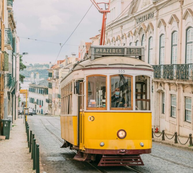 In Portugal gibt es ein gut ausgebautes Netz von Bussen, Bahnen und U-Bahnen in den großen Städten wie Lissabon und Porto. Schnellzüge verbinden die wichtigsten Städte, und besonders entlang der Küste und ins Landesinnere kommst du so schnell voran.