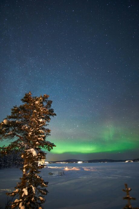 Abisko im Norden hingegen liegt bereits in einer subarktischen Klimazone. Die Winter sind meist kalt und trocken, mit Temperaturen, die deutlich unter den Gefrierpunkt fallen können. Genau diese klaren, kühlen Bedingungen sorgen in der Regel für gute Sichtverhältnisse, um Nordlichter zu beobachten. Die Sommer sind kurz, aber durch die langen Tageslichtstunden besonders intensiv.