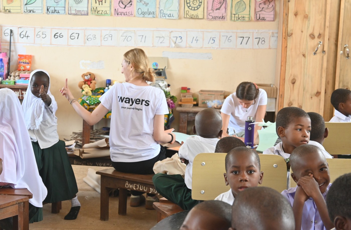 Auch im Unterricht kannst du aktiv mitgestalten. Viele Fächer – vor allem Englisch – werden auf Sansibar bereits in der Grundschule unterrichtet, oft jedoch von Lehrkräften, deren eigenes Englisch begrenzt ist. Genau hier kommst du ins Spiel: Besonders im Englischunterricht kannst du deine eigenen Skills nutzen und den Kindern zusammen mit den Lehrkräften vor Ort spielerisch die Sprache beibringen.