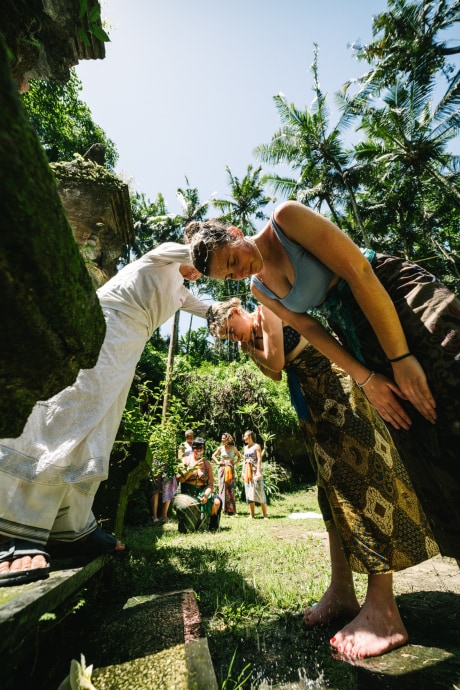 Heute startest du reflektiert und entspannt in deinen Morgen. Der Vormittag steht dir zur freien Verfügung, bevor es am Nachmittag weitergeht es zu unserem nächsten Highlight. Du erlebst eine echte balinesische Segnungszeremonie. An den natürlichen Quellen kannst du an der traditionellen Waschung teilnehmen und bewusst spüren, wie der Hohepriester mit frischem Wasser deine alten Glaubenssätze vom Körper spült. Ein absoluter Gänsehautmoment.